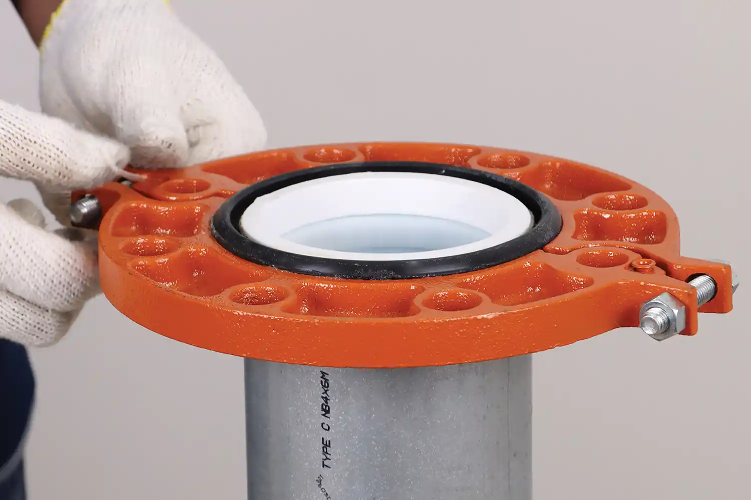 2. นำ Grooved Flange โดยหันด้านหลังมาประกบเข้ากับปากท่อ